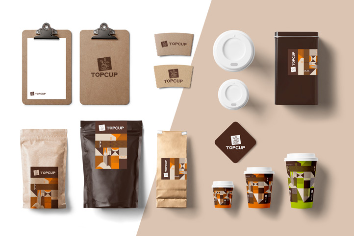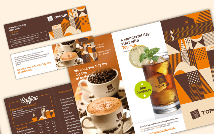 美御有幸成為TOPCUP的合作伙伴,為其塑造整體品牌形象。整個項目作業歷時2個月左右。TOPCUP品牌整體形象以褐色為主,整個logo設計以圖形加文字形式,圖形以咖啡杯和茶葉的形象演繹,形象而又簡易,完美的詮釋了“以咖啡形式傳承茶文化”的品牌理念。