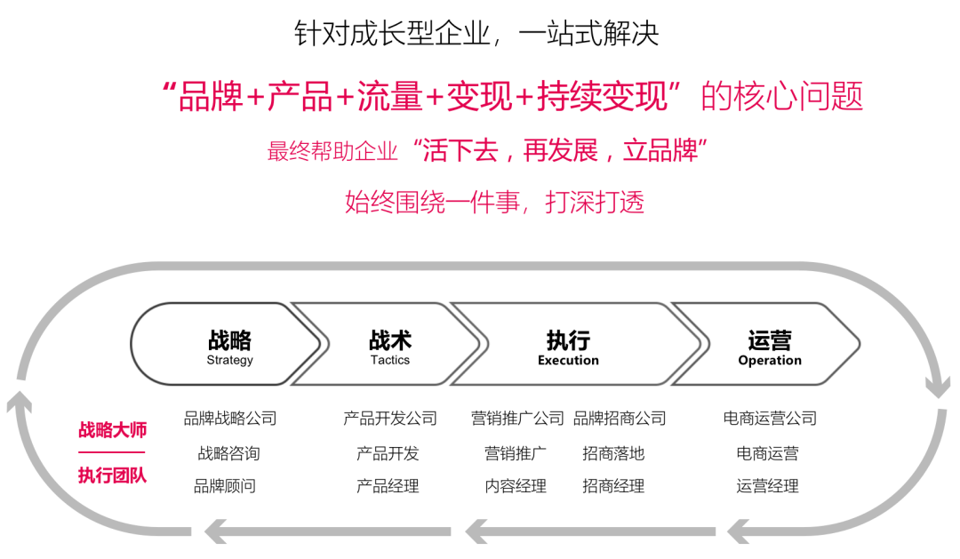 美御以結(jié)果為導向,以年輕化戰(zhàn)略和創(chuàng)新思維為手段,通過創(chuàng)新的戰(zhàn)略打法,從戰(zhàn)略到戰(zhàn)術(shù)、從執(zhí)行到運營,為成長型企業(yè)量身定制,通過貼身服務(wù)、深度綁定,一站式解決“品牌+產(chǎn)品+流量+變現(xiàn)+持續(xù)變現(xiàn)”的核心問題,幫助企業(yè)“活下去、再發(fā)展、立品牌”!