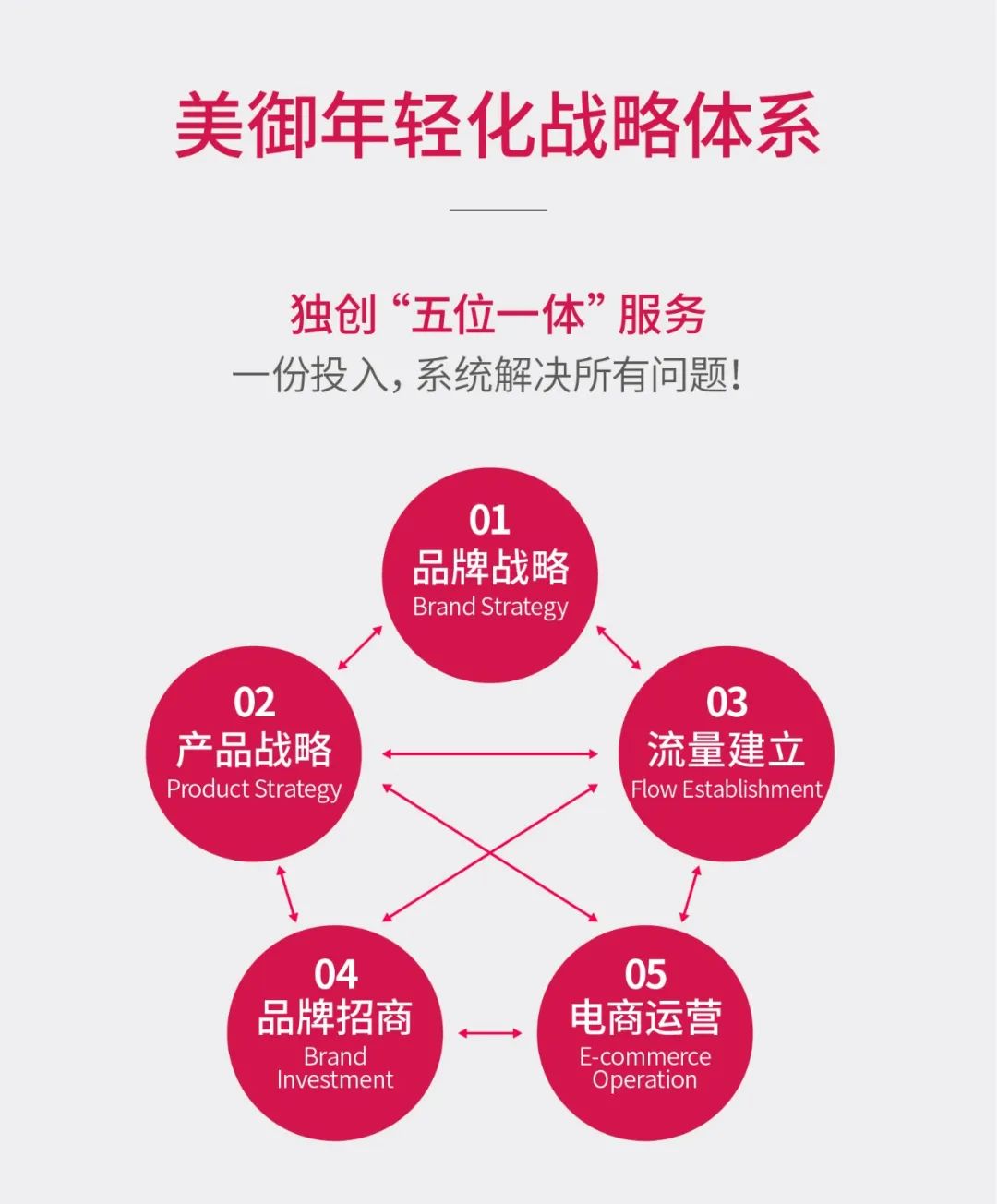 美御15年來服務(wù)超50家世界500強企業(yè),同時協(xié)助100家企業(yè)成為細分領(lǐng)域頭部品牌,不僅只是幫助企業(yè)解決傳統(tǒng)的品牌營銷問題,更能從戰(zhàn)略的高度,以創(chuàng)新驅(qū)動,變革傳統(tǒng)市場,滿足新消費市場的需求,為品牌注入年輕化基因,發(fā)展至今已經(jīng)形成一套成熟服務(wù)體系「年輕化戰(zhàn)略體系」。